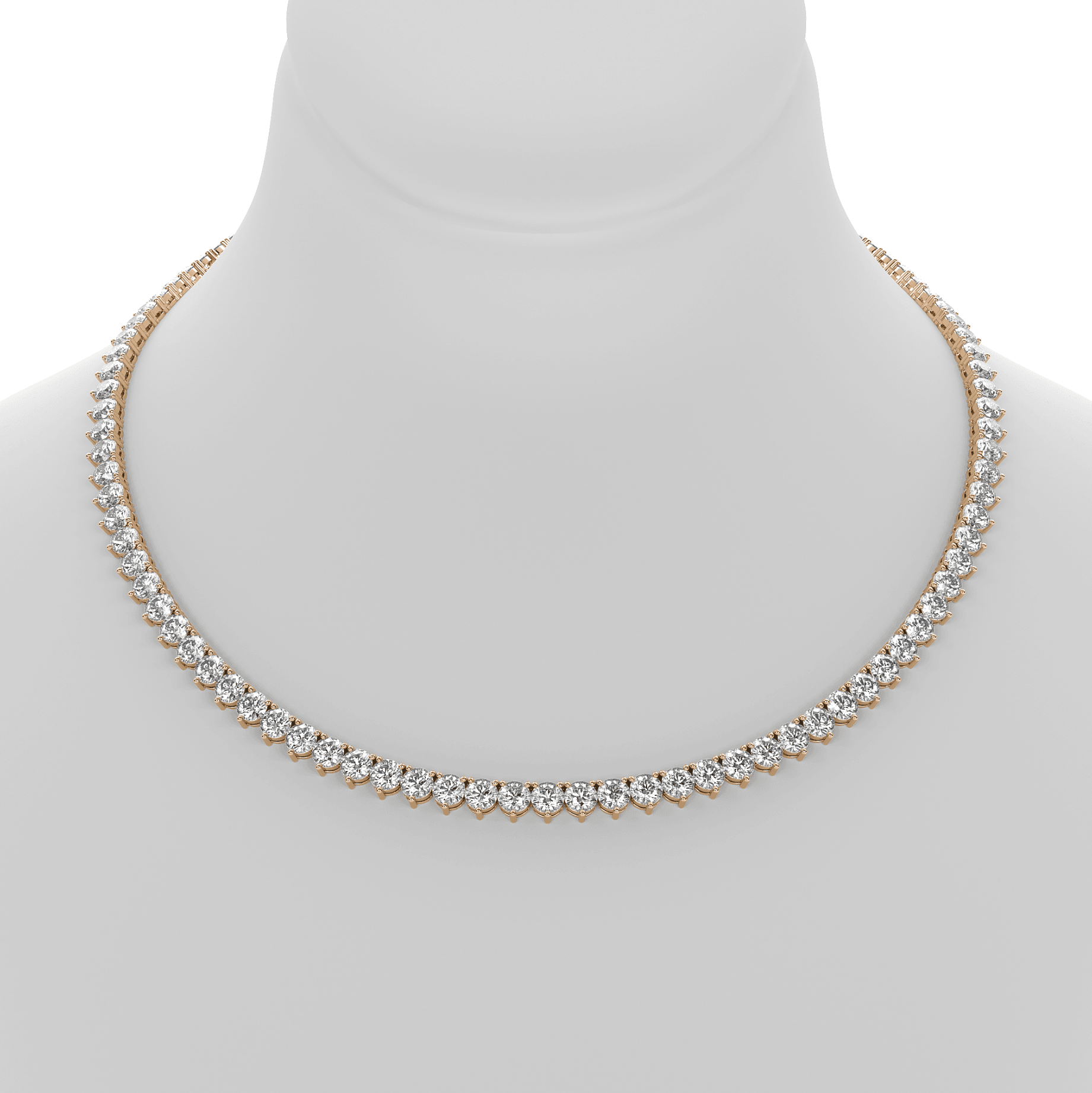 This 3-Prong classic tennis necklace features a continuous line of meticulously matched round brilliant-cut diamonds, each secured in a timeless four-prong setting that maximizes light exposure and enhances brilliance. Crafted in high-polish 14K or 18K gold or platinum, the four-prong design offers both security and a refined, elegant profile. The diamonds are hand-selected for exceptional sparkle and uniformity, creating a seamless and radiant flow around the neckline. Ideal for both everyday luxury and formal occasions, this necklace is a sophisticated staple in any fine jewelry collection.