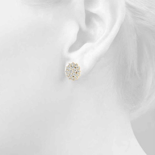 LARGE ROUND DIAMOND CLUSTER EARRINGS in 18K Yellow Gold