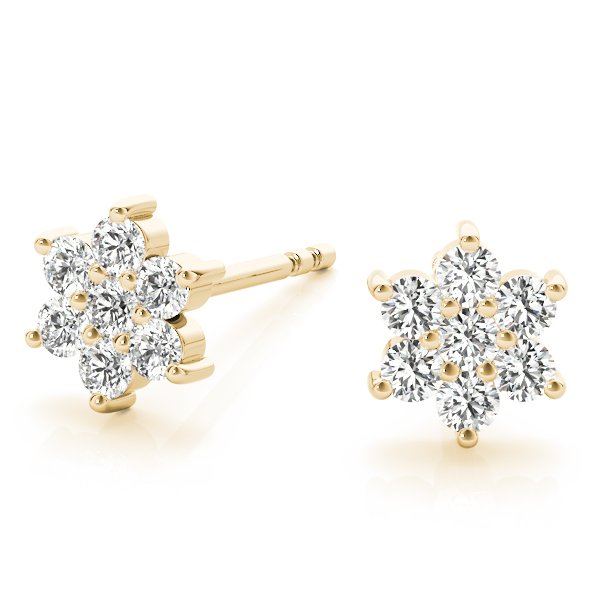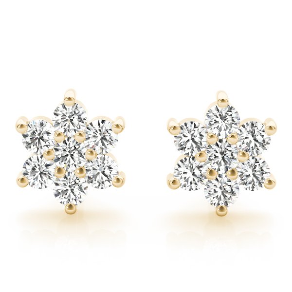 PRONG TIPPED FLOWER DIAMOND CLUSTER EARRINGS in 14K Yellow Gold