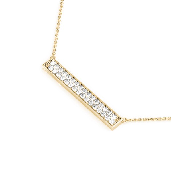 Elevate your style with our trapeze diamond bar pendant. Sleek and modern, it adds a touch of sophistication and sparkle to any ensemble. This Bar Pendant is suspended by 18 inch cable chain. Available in white gold, rose gold, or platinum. Choose your diamond type and metal preference.