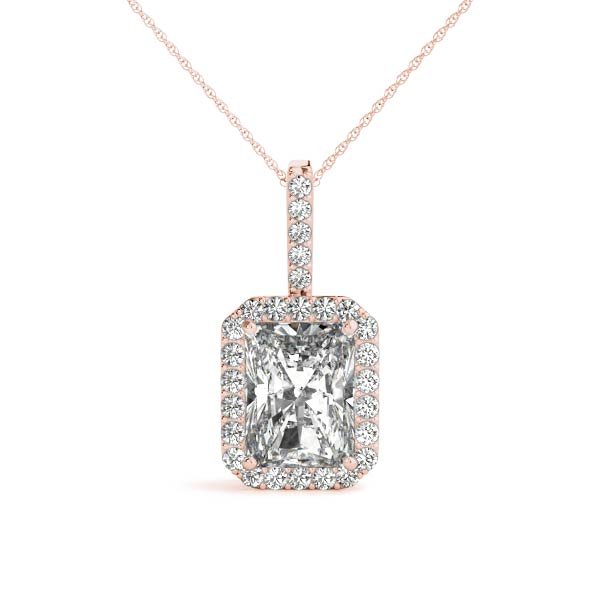Adorn yourself in sophistication with our exquisite emerald-shaped diamond halo pendant. Radiate elegance with this timeless piece. This Halo Pendant is suspended by 18 inch cable chain. Available in white gold, rose gold, or platinum. Choose your diamond type and metal preference. Setting only, complete this with your own choice of center diamond!