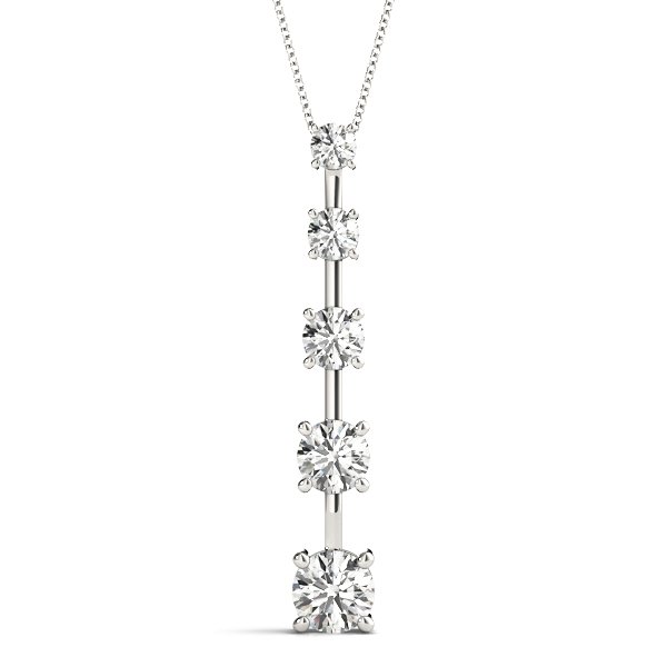 Embrace the journey of life's moments with our Long Diamond Journey Pendant. Each diamond represents a milestone, creating a stunning display of elegance and memories. This Journey Pendant is suspended by 18 inch cable chain. Available in white gold, rose gold, or platinum. Choose your diamond type and metal preference.