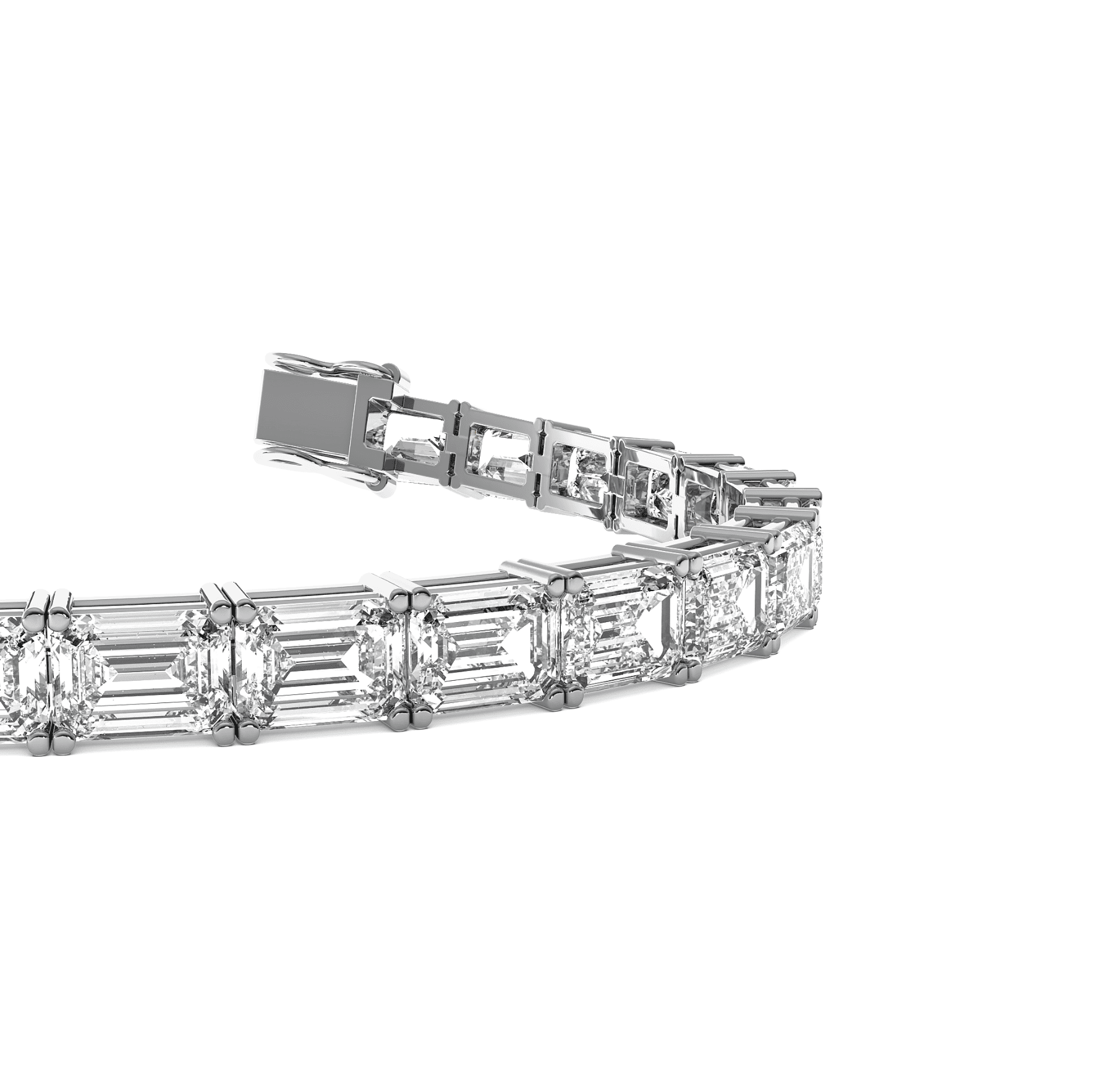 A timeless tennis bracelet featuring a continuous line of perfectly matched emerald-cut diamonds. Each stone is set east to west and secured in a refined setting, creating a sleek, uninterrupted design that emphasizes the clean geometry and elegant sparkle of the emerald cut. Finished with a secure clasp, this bracelet is a classic expression of sophistication and everyday luxury.