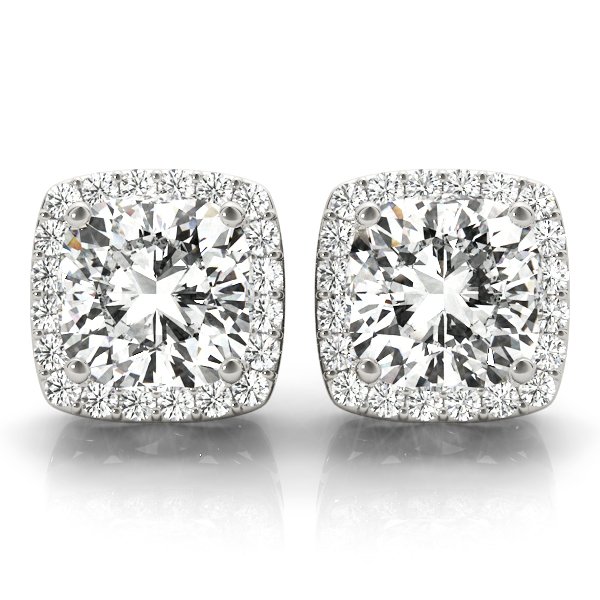 CUSHION HALO DIAMOND EARRINGS (SETTING ONLY) in 18K White Gold