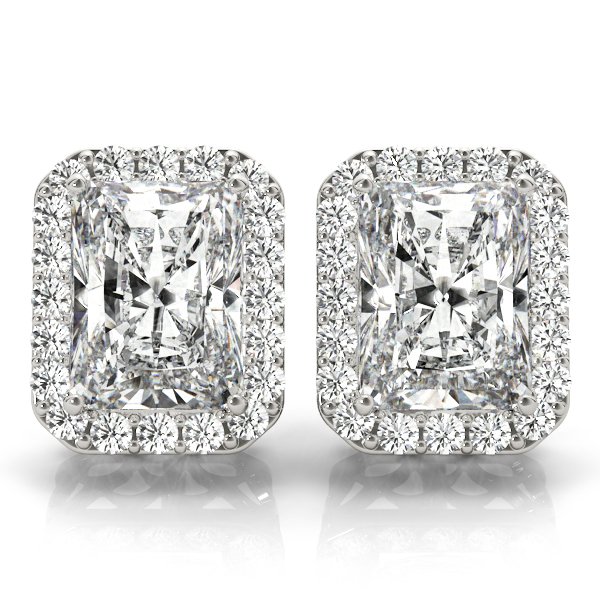 Embrace elegance with our Emerald Cut Diamond Halo Earrings. Featuring captivating emerald-cut diamonds surrounded by a dazzling halo, these earrings exude sophistication and timeless allure. Available in white gold, rose gold, or platinum. Choose your diamond size and metal preference. Setting only, complete this with your own choice of center diamond!
