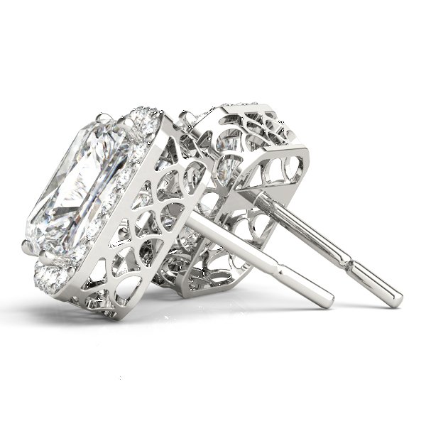 EMERALD HALO DIAMOND EARRINGS (SETTING ONLY) in 18K White Gold