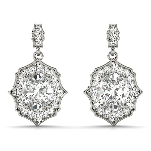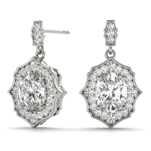 OVAL DIAMOND IN VICTORIAN STYLE HALO EARRINGS (SETTING ONLY) in 14K White Gold