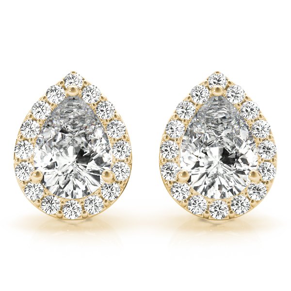 PEAR SHAPED HALO DIAMOND EARRINGS in 14K Yellow Gold