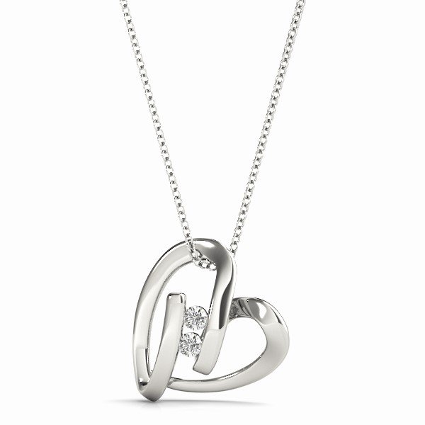 2 STONE DIAMOND HEART PENDANT in 18K White Gold