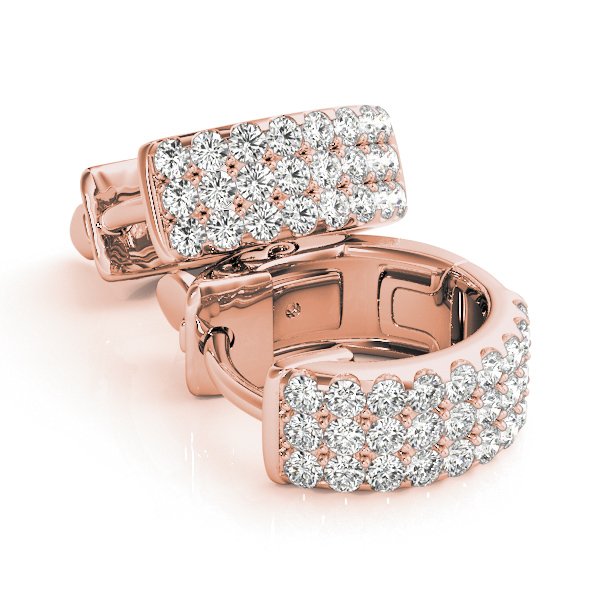 3 ROW FLAT HOOP DIAMOND EARRINGS in Rose Gold