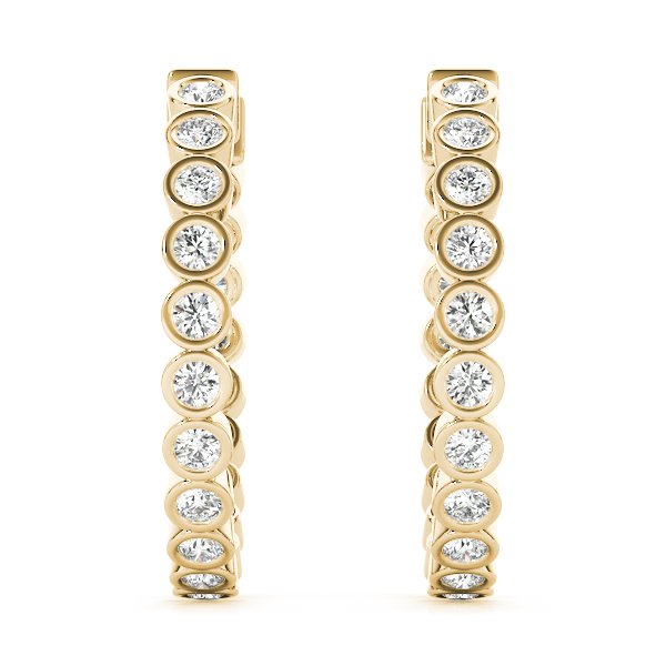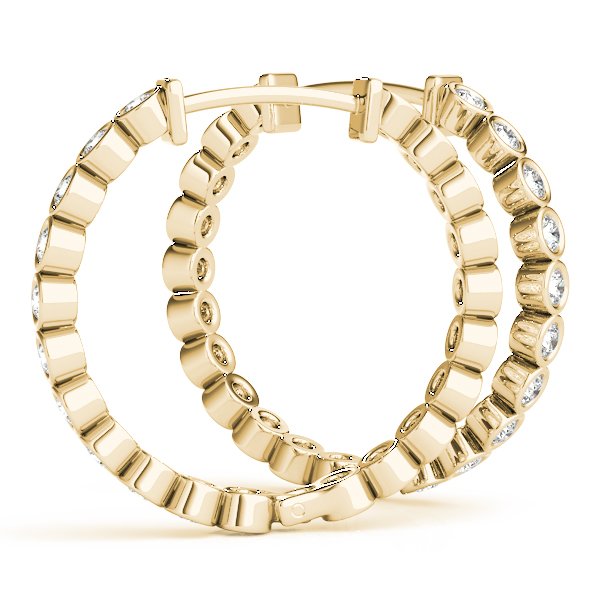 Discover elegance redefined with our bezeled diamond hoop earrings. Each diamond delicately encased in a sleek bezel setting, these earrings exude understated luxury. Elevate any ensemble with the timeless sophistication and radiant sparkle of these exquisite hoops. Available in white gold, rose gold, or platinum. Choose your diamond type and metal preference.