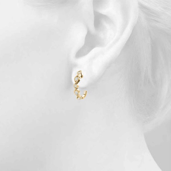 BRAIDED J HOOP DIAMOND EARRINGS in 18K Yellow Gold