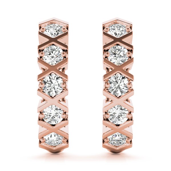 elegance. Adorned with shimmering diamonds in a unique X-shaped design, these earrings are sure to make a statement. Elevate your look with the perfect balance of sophistication and contemporary flair. Available in white gold, rose gold, or platinum. Choose your diamond type and metal preference.
