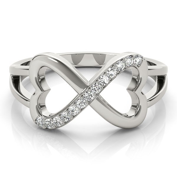Introducing our Infinity Heart Diamond Ring. A symbol of eternal love and boundless affection, this ring combines the timeless infinity symbol with a delicate heart motif adorned with sparkling diamonds. Elevate your style with this exquisite accessory, perfect for expressing your everlasting devotion. Available in white gold, rose gold, or platinum.