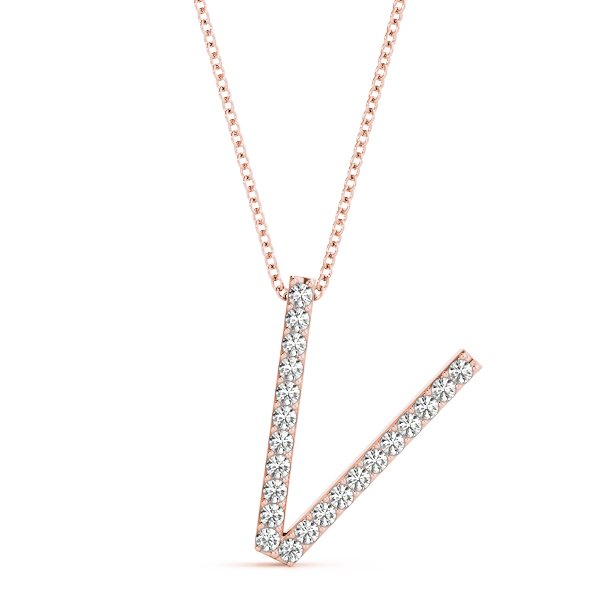 DIAMOND PAVE SETTING V INITIAL in Rose Gold