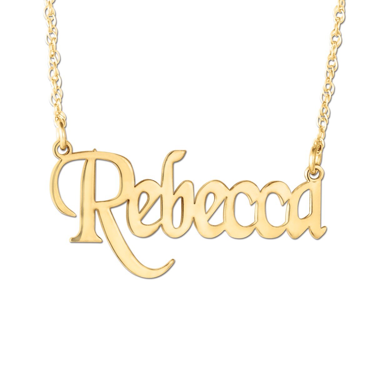 Elevate your style with our Traditional Gold Nameplate pendant. Personalized elegance for every occasion. This Nameplate Pendant is suspended by 18 inch cable chain. Available in white gold, rose gold, or platinum. Choose your diamond type and metal preference.
