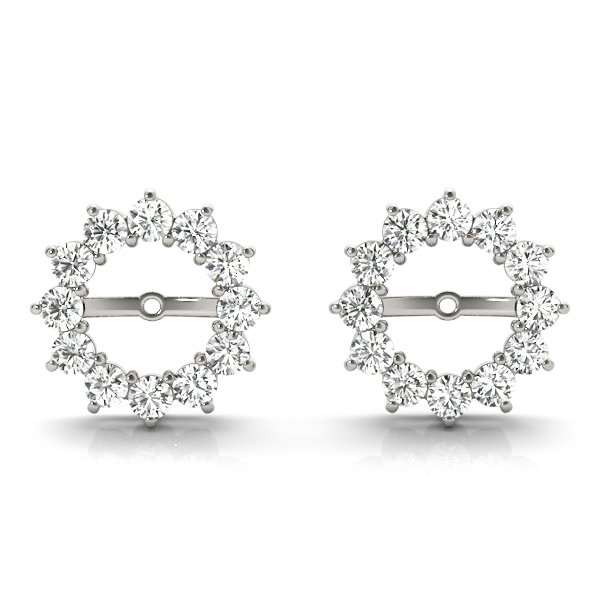 Introducing our Raised Diamond Jacket Earrings. Each earring boasts a raised setting adorned with sparkling diamonds, adding a touch of sophistication and glamour to any ensemble. Elevate your style with these exquisite earrings that effortlessly enhance your look. Available in white gold, rose gold, or platinum.