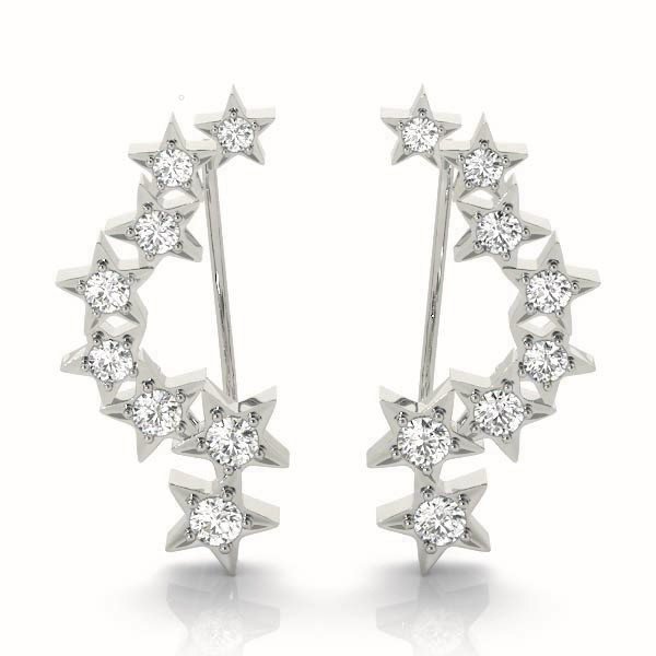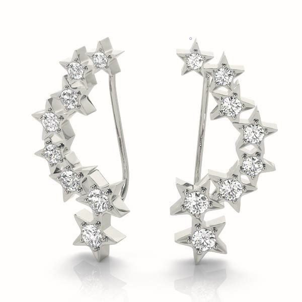 Twinkle with celestial elegance in our Diamond Star Climber Earrings. Each delicate star-shaped design ascends gracefully, adorned with dazzling diamonds, illuminating your style with celestial charm. Shine bright with every step you take. Available in white gold, rose gold, or platinum. Choose your diamond size and metal preference.