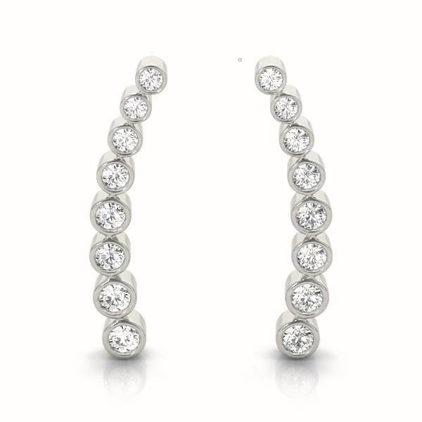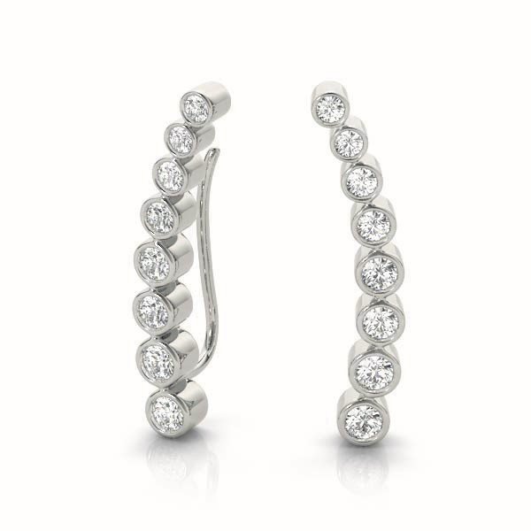 Adorn yourself with elegance in our Bezeled Climber Diamond Earrings. Each diamond is delicately set in a bezel, creating a modern and sophisticated look. Elevate your style with these stunning earrings that seamlessly blend contemporary design with timeless beauty. Available in white gold, rose gold, or platinum. Choose your metal preference.