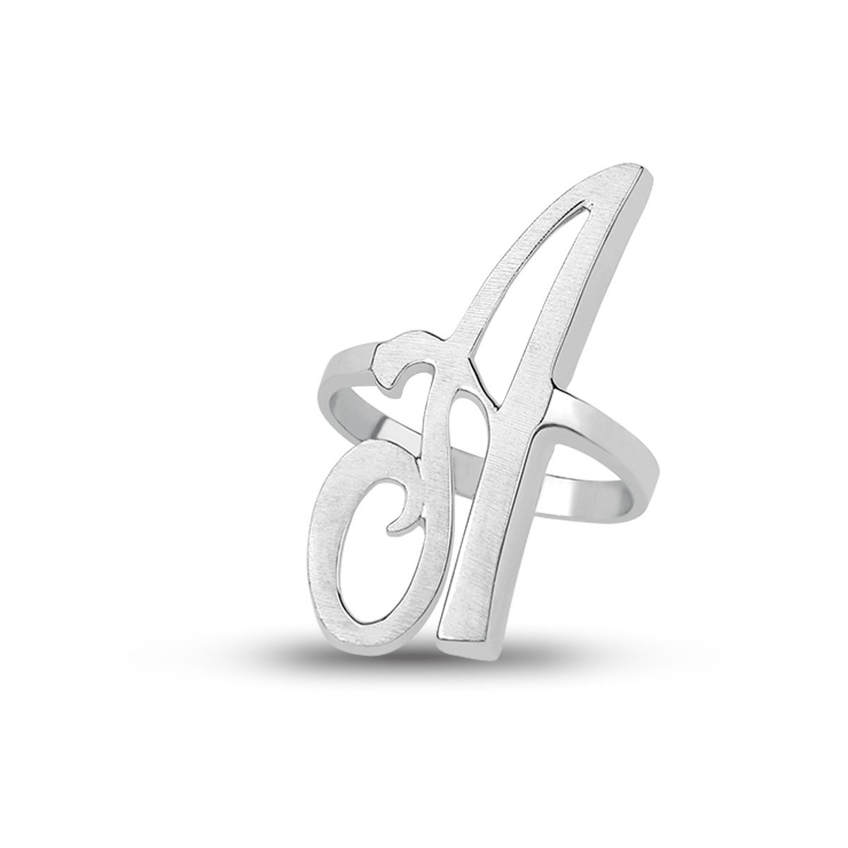 SINGLE INITIAL MONOGRAM RING in 18K White Gold