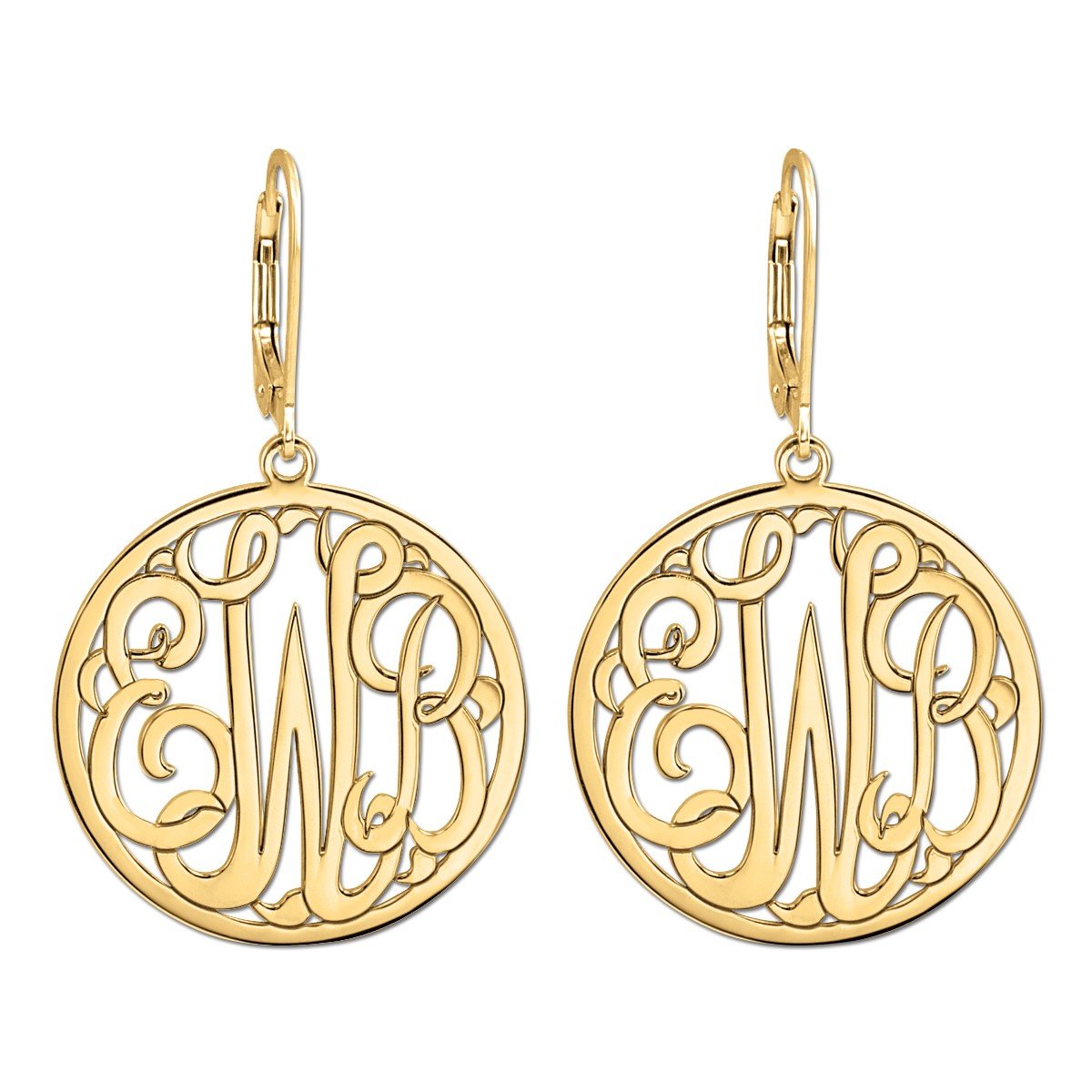 CIRCLE MONOGRAM EARRINGS WITH SOLD BORDER in 18K Yellow Gold
