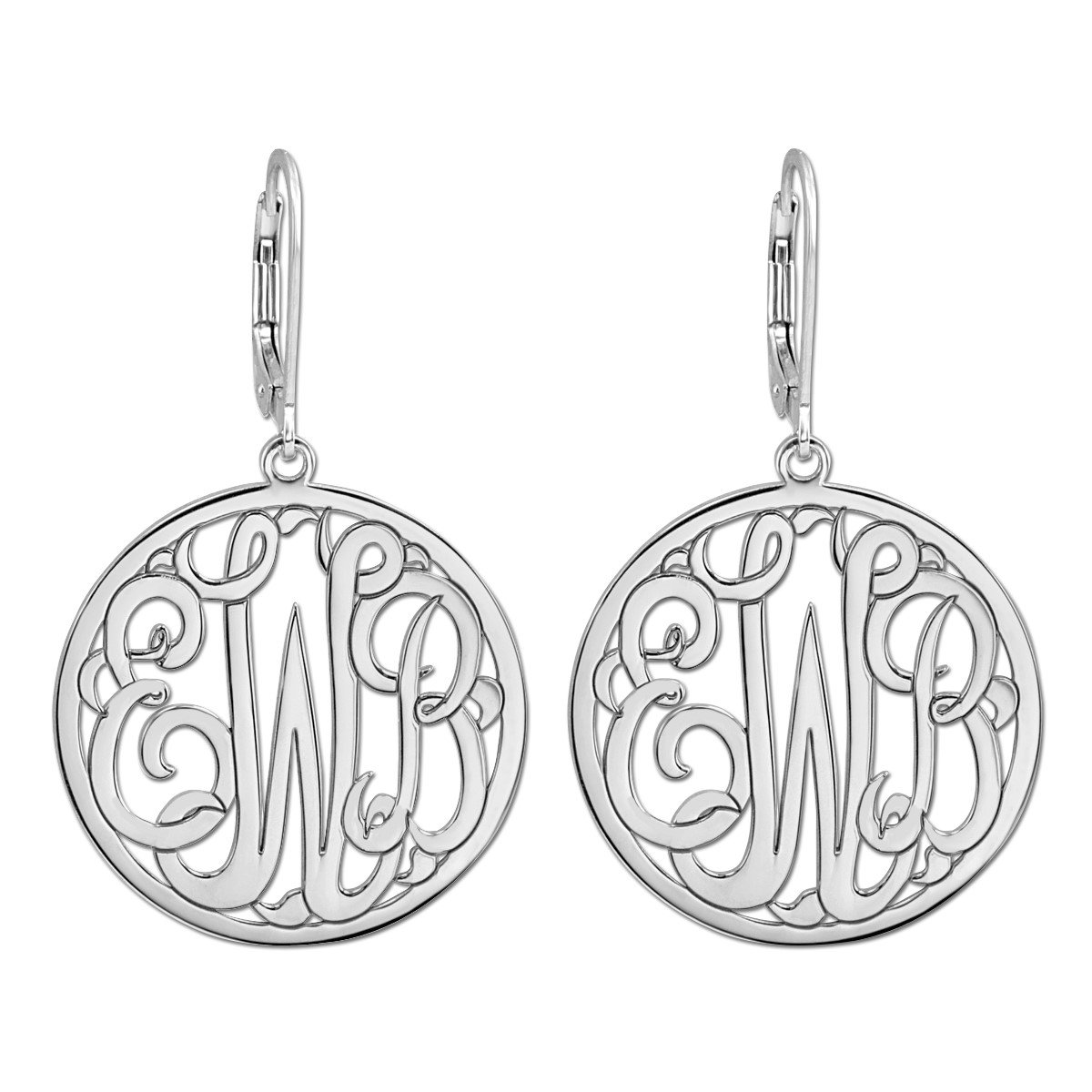 CIRCLE MONOGRAM EARRINGS WITH SOLD BORDER in Platinum