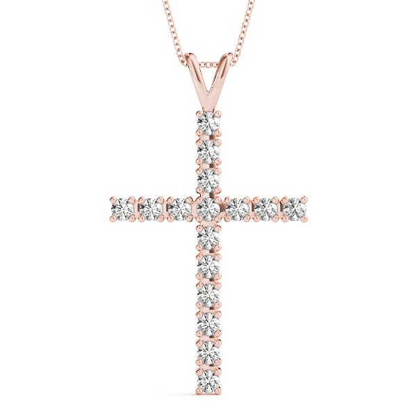 16 STONE V SHAPED BAIL DIAMOND CROSS in Rose Gold
