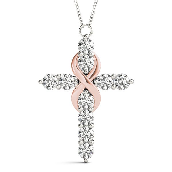 Each dazzling diamond meticulously set in gold or platinum radiates brilliance, capturing the eye with its mesmerizing sparkle. The central infinity motif adds a touch of contemporary sophistication, representing boundless love and endless possibilities. This cross is suspended by 18 inch cable chain. Available in white gold, rose gold, or platinum. Choose your diamond type and metal preference.