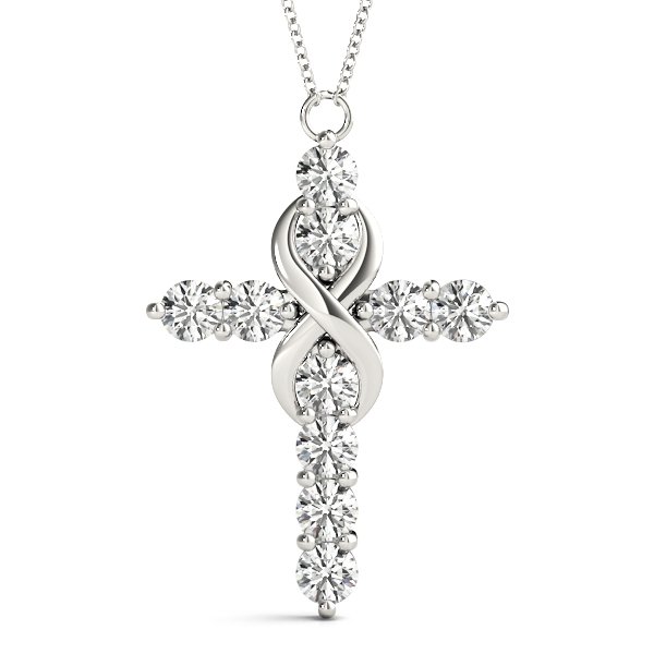 Each dazzling diamond meticulously set in gold or platinum radiates brilliance, capturing the eye with its mesmerizing sparkle. The central infinity motif adds a touch of contemporary sophistication, representing boundless love and endless possibilities. This cross is suspended by 18 inch cable chain. Available in white gold, rose gold, or platinum. Choose your diamond type and metal preference.