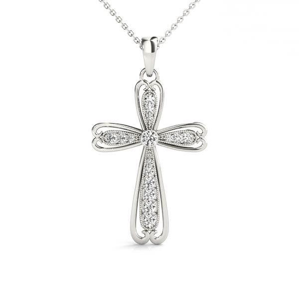 ROUNDED TIP DIAMOND CROSS in 14K White Gold