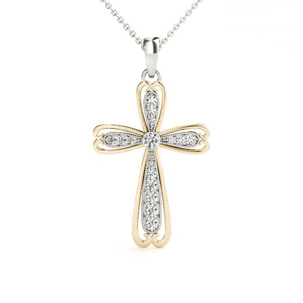 ROUNDED TIP DIAMOND CROSS in 18K Yellow Gold
