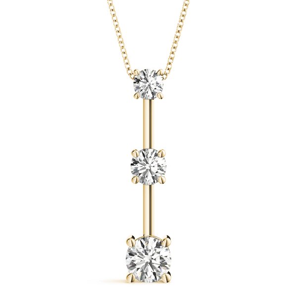 Embark on a journey of elegance with our three-stone drop pendant. Each stone symbolizes a step, creating a captivating tale of beauty and grace. This 3 Stone Pendant is suspended by 18 inch cable chain. Available in white gold, rose gold, or platinum. Choose your diamond type and metal preference.
