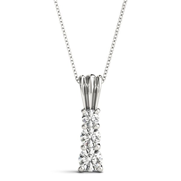 4 PRONG 3 STONE DIAMOND PENDANT in 14K White Gold