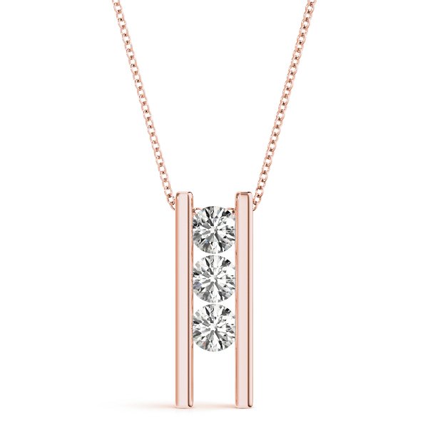 TWO BAR 3 STONE DIAMOND PENDANT in Rose Gold