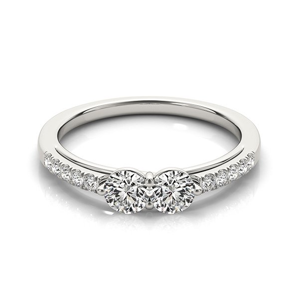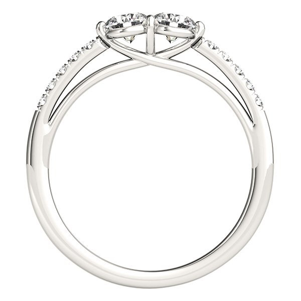 Introducing our Inline 2 Stone Diamond Ring. Two dazzling diamonds are elegantly set in a line, with additional diamonds adorning the setting for extra brilliance. Elevate your style with this exquisite accessory, perfect for adding a touch of glamour to any ensemble. Choose the Carat Weight of the 2 Center Stones. Available in white gold, rose gold, or platinum.