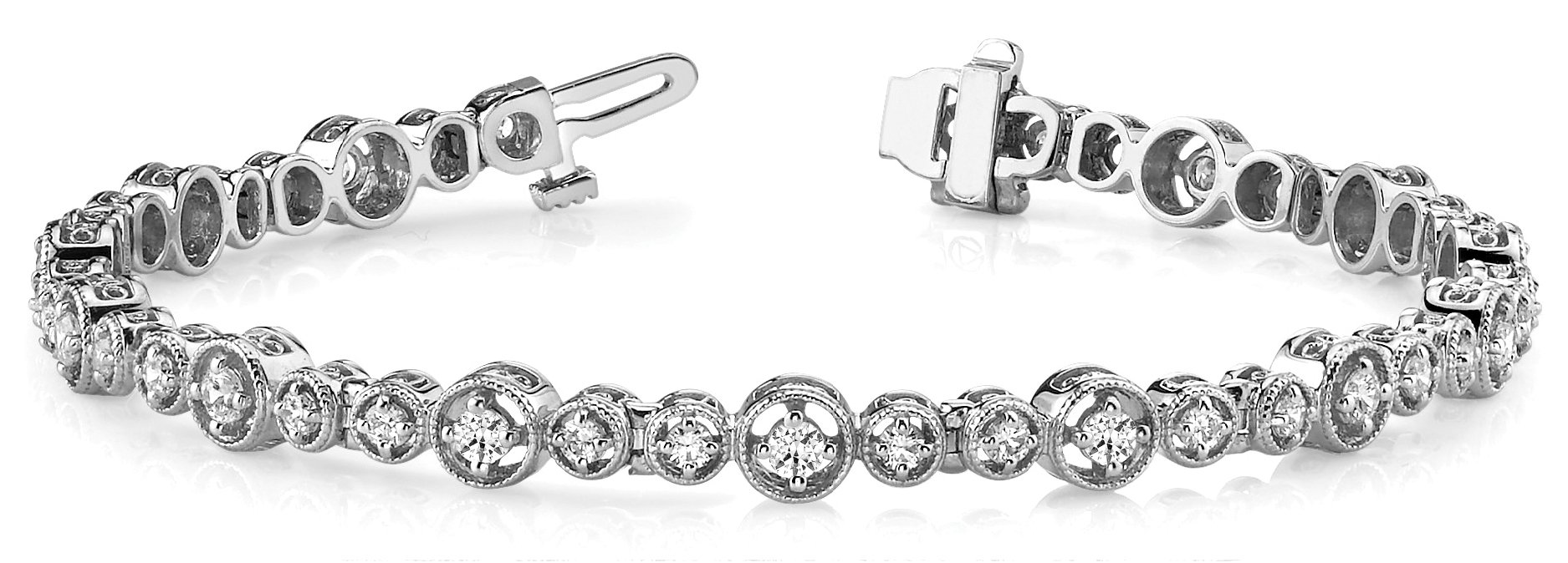 VINTAGE DIAMOND BRACELET WITH ROUND MILGRAIN BEZELS in 14K White Gold