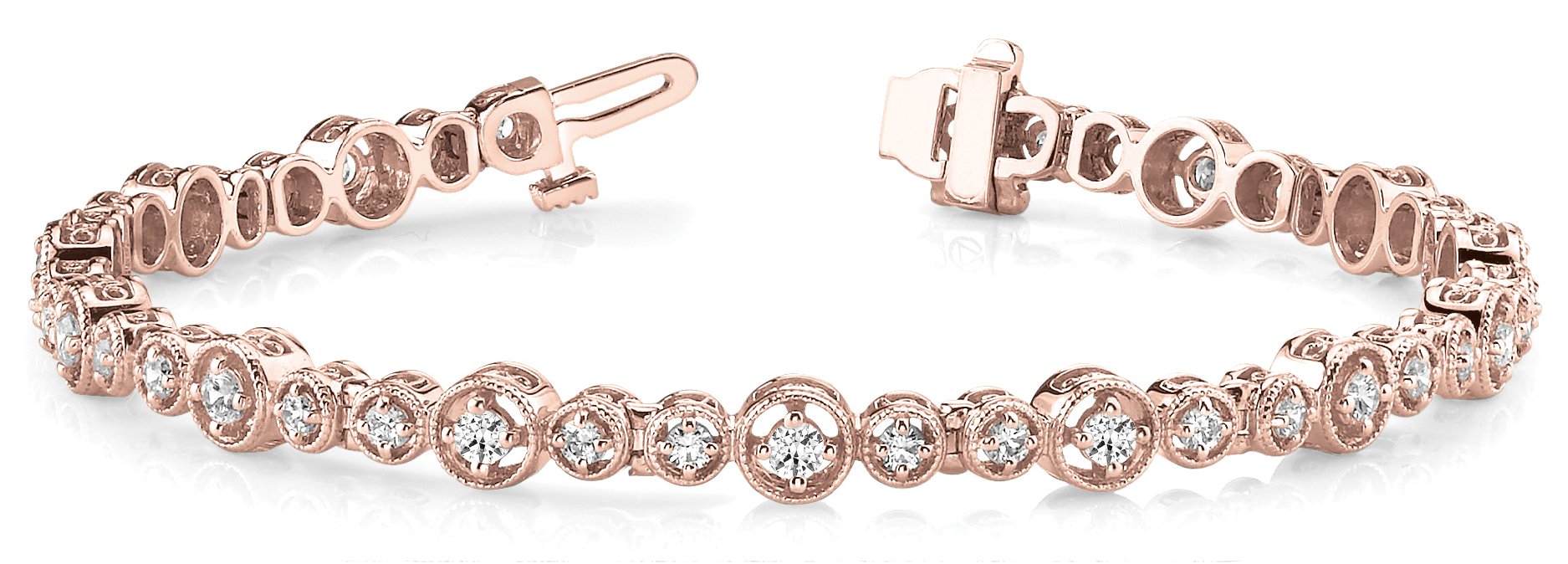 VINTAGE DIAMOND BRACELET WITH ROUND MILGRAIN BEZELS in Rose Gold