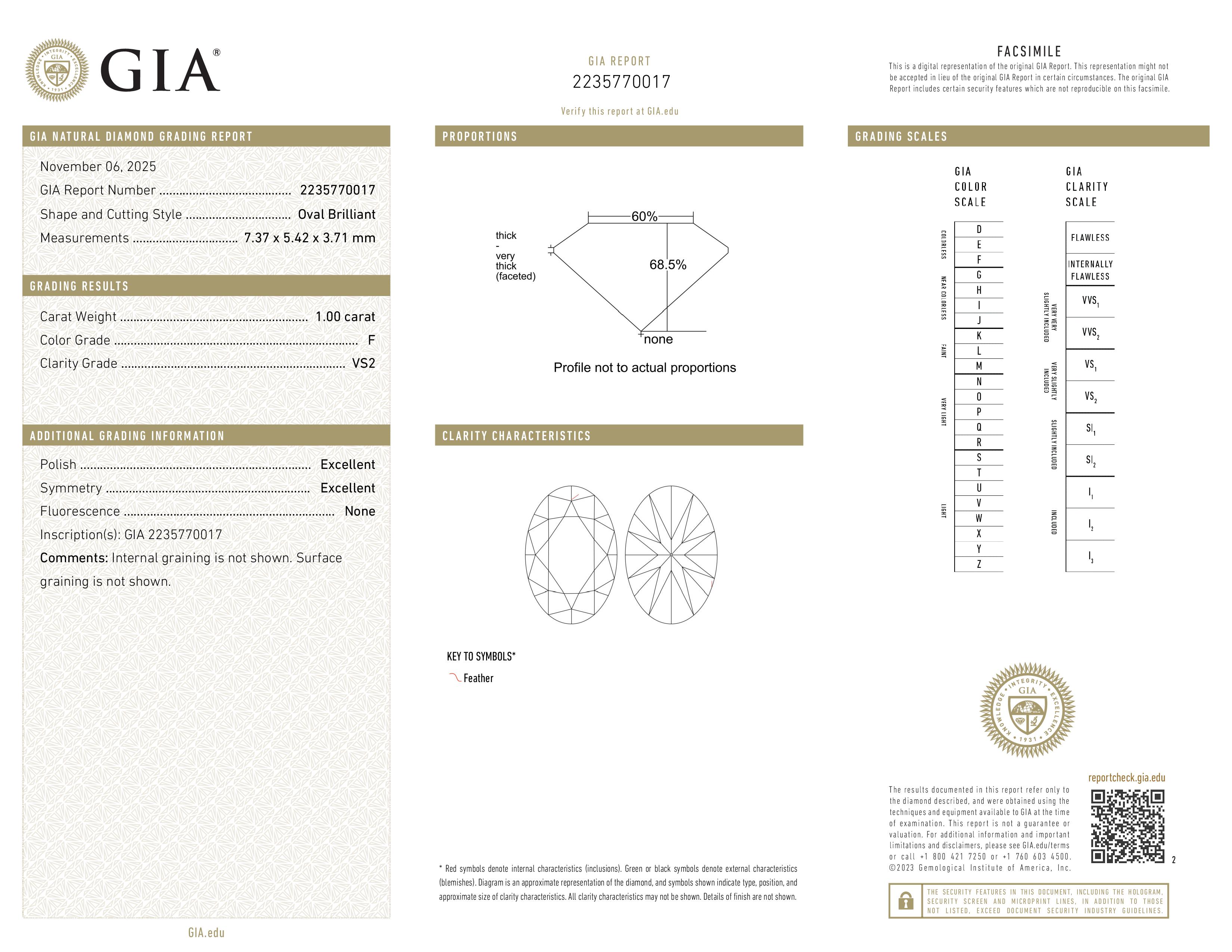 (VS2) Most people find this to be the sweet spot. This diamond contains very, few inclusions that are difficult for the untrained eye to see under 10x magnification. VS2 diamonds have no visible blemishes and are less expensive than higher clarity grades, therefore offering exceptional value while not compromising on quality.