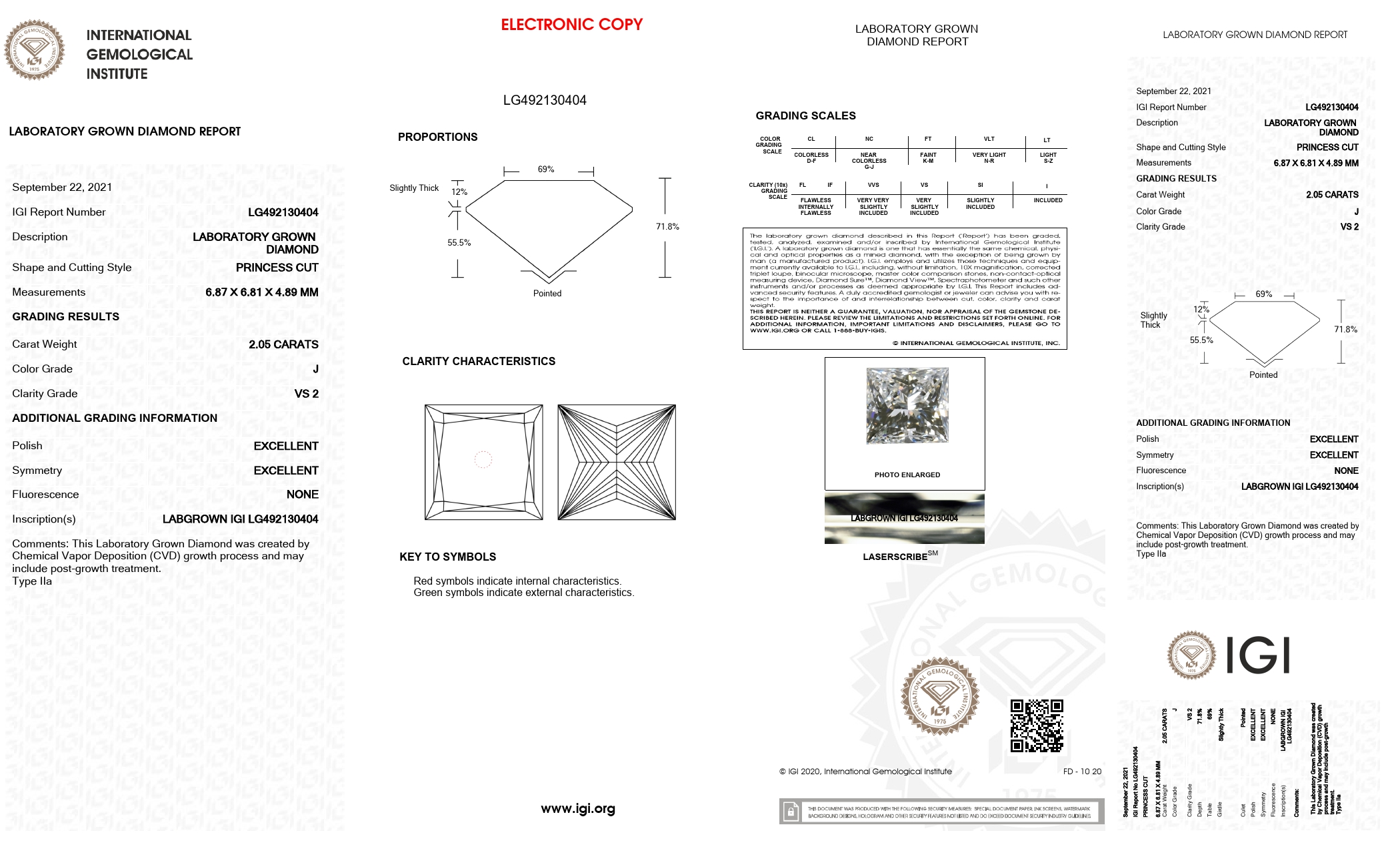 2.05 Carat - Princess Cut Lab Grown Diamond