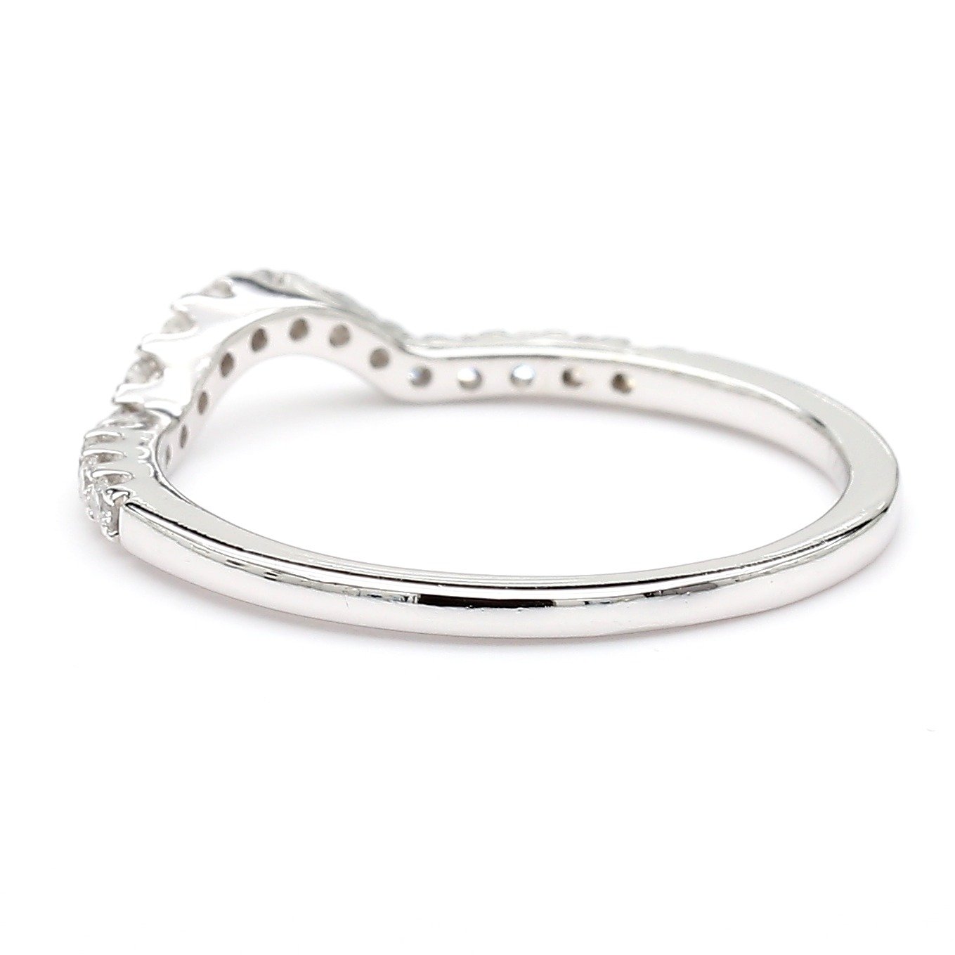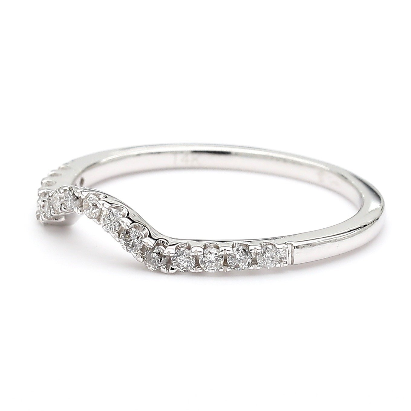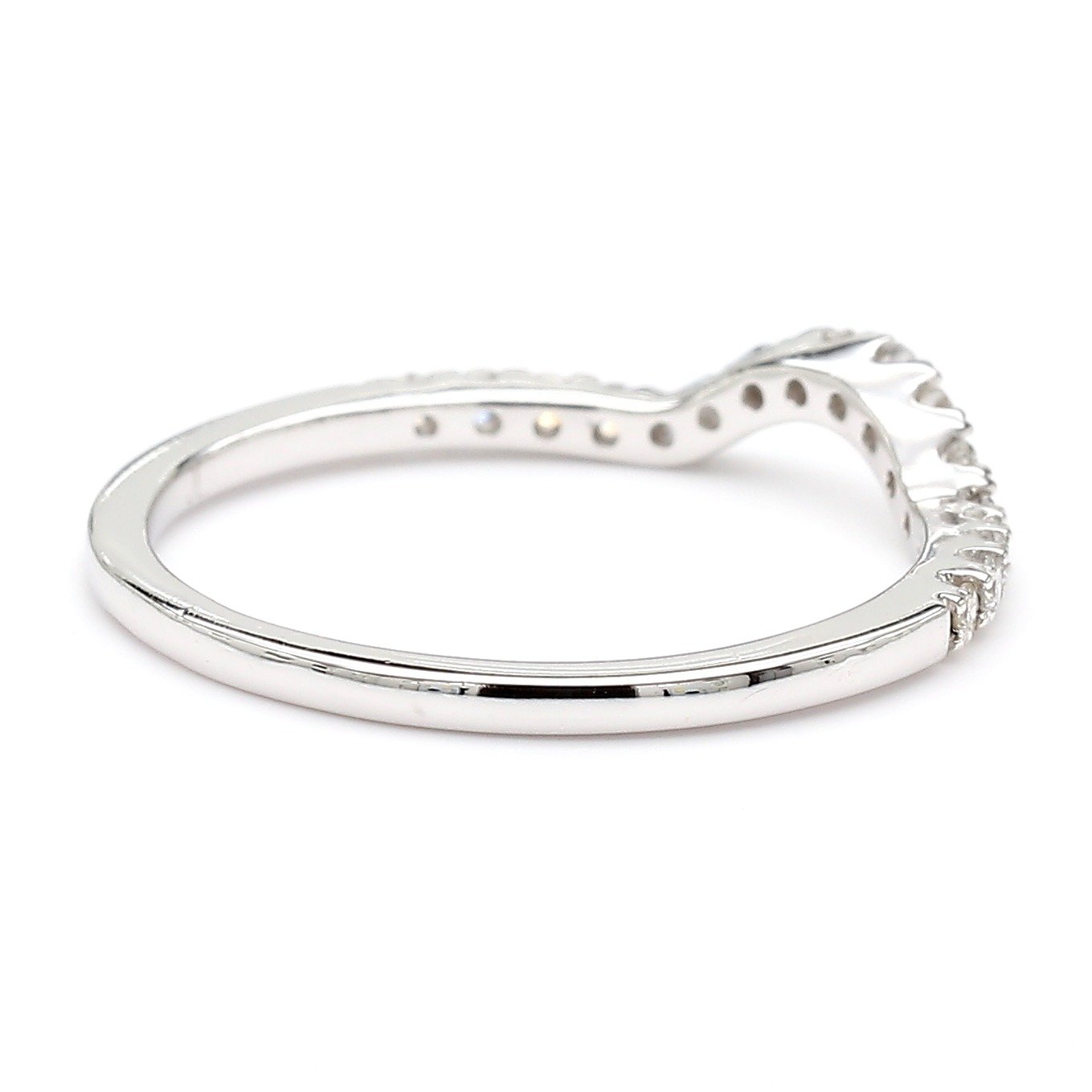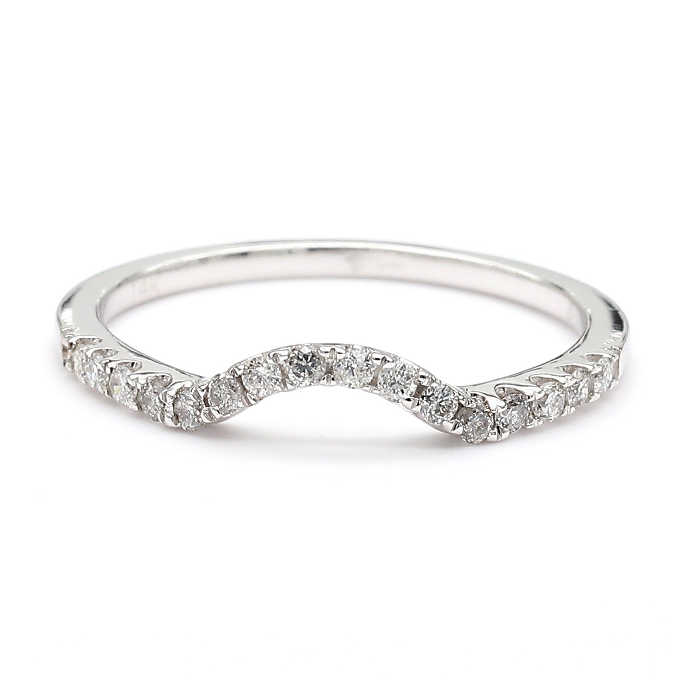 The Elara Curve Diamond Band is a delicate and sophisticated wedding band, designed to gracefully complement an engagement ring or be worn as a standalone statement of elegance. Crafted in lustrous white gold or platinum, the band features a subtle curved silhouette, allowing for a seamless fit alongside other rings. A row of sparkling round-cut diamonds is meticulously set along the curve in a shared-prong setting, enhancing its brilliance while maintaining a refined and timeless look. The gentle contour of the Elara Curve Diamond Band symbolizes harmony and unity, making it a perfect choice for those who appreciate understated luxury with a celestial touch.