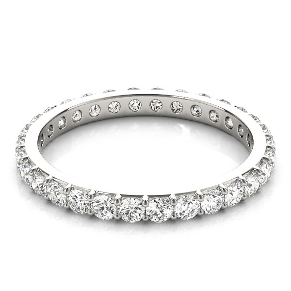An outstanding band featuring continuous round brilliant diamonds in an enduring shared prong setting. A perfect compliment to any engagement ring or as a stackable statement piece for any occasion.