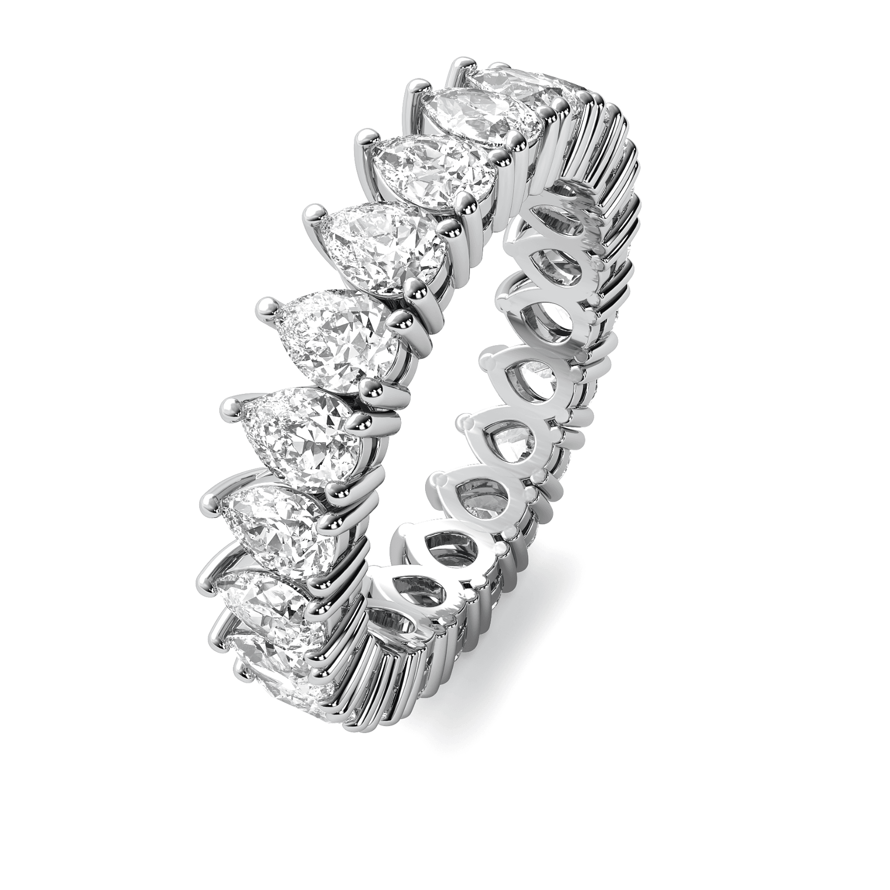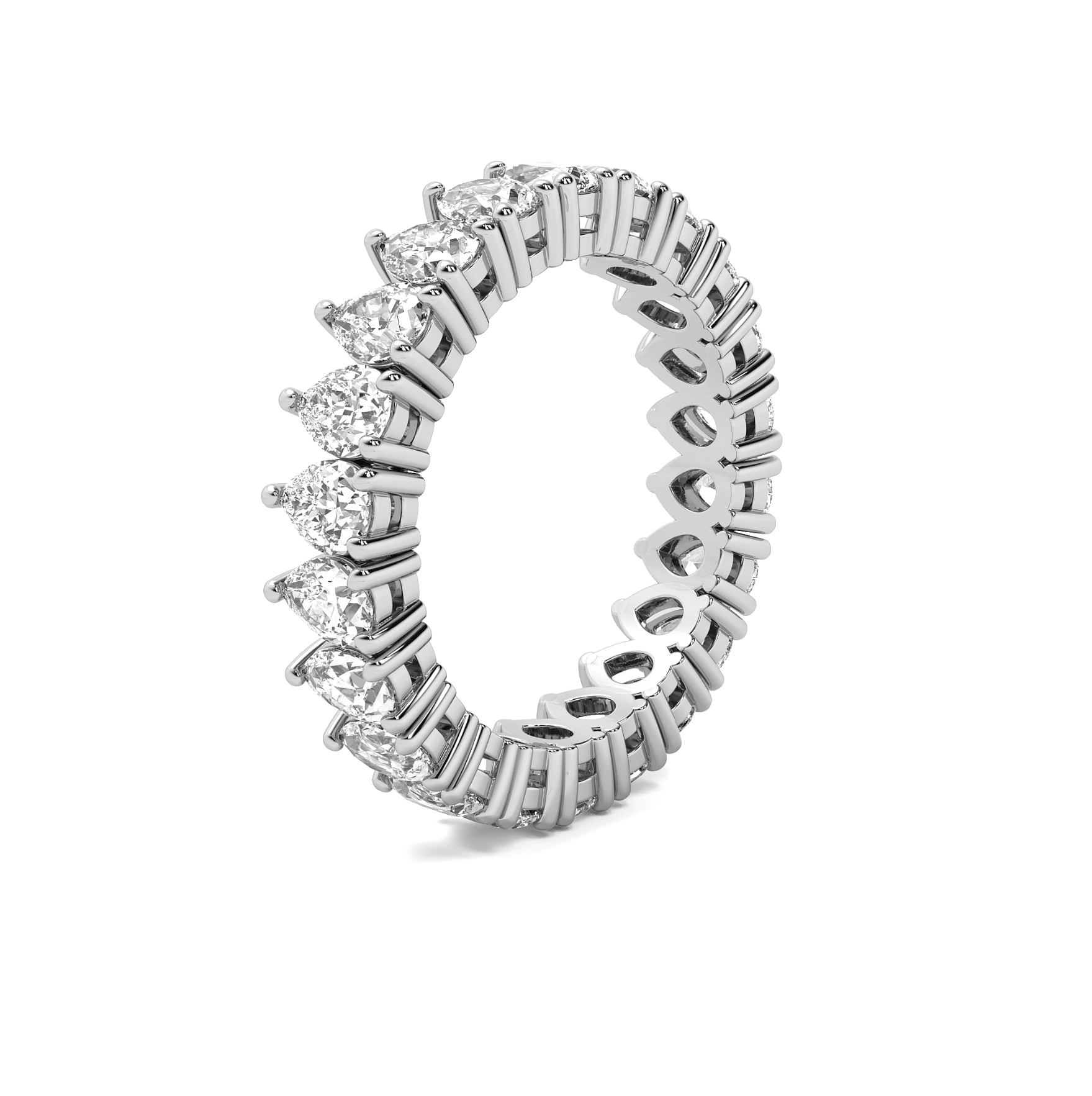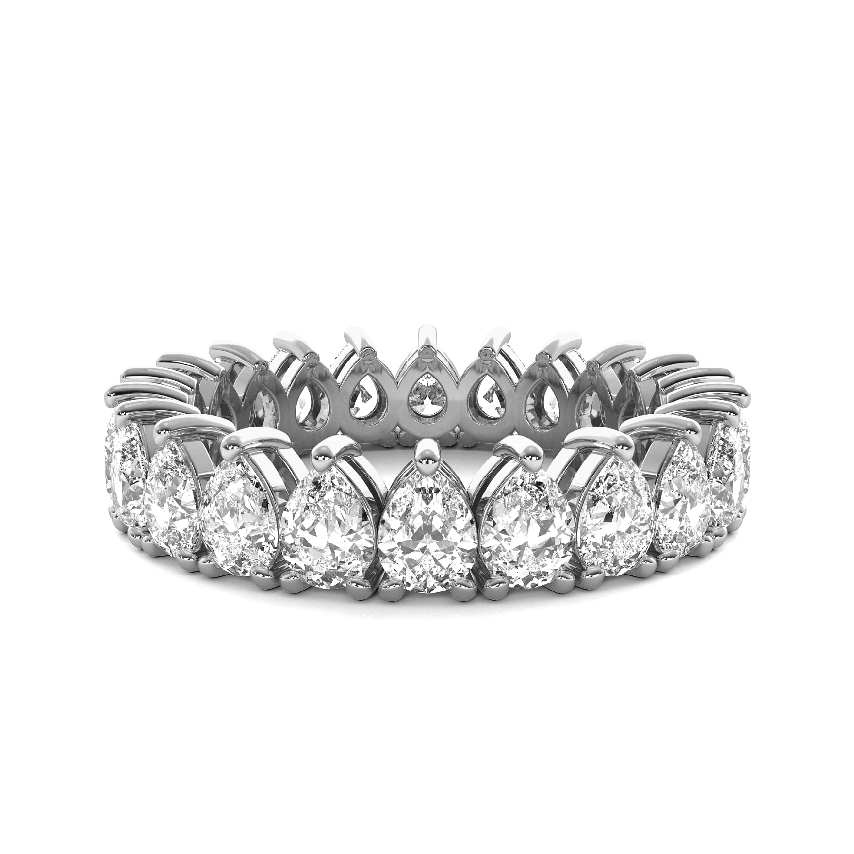 A Pear Eternity Diamond Ring is a stunning, timeless piece of jewelry that combines elegance and sophistication. The ring is typically designed with a continuous band of diamonds, set in a symmetrical pattern around the entire circumference, offering a continuous sparkle from every angle.