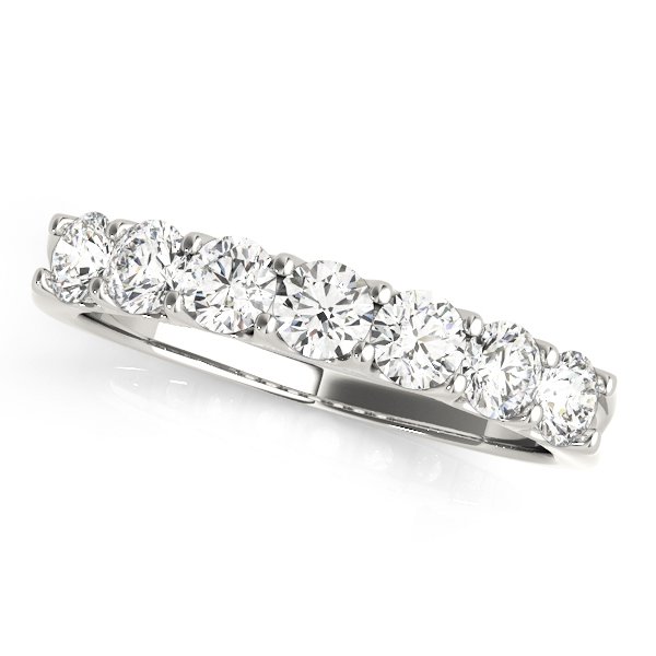 This wedding band features seven round brilliant cut diamonds set in a shared prong setting, with a beautiful U Shape profile.