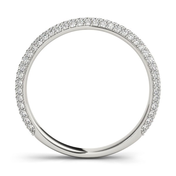 Dome design wedding ring, feauturing 3 rows of micro-pave diamonds going 3/4 of the way. Plain smooth shank at the bottom.