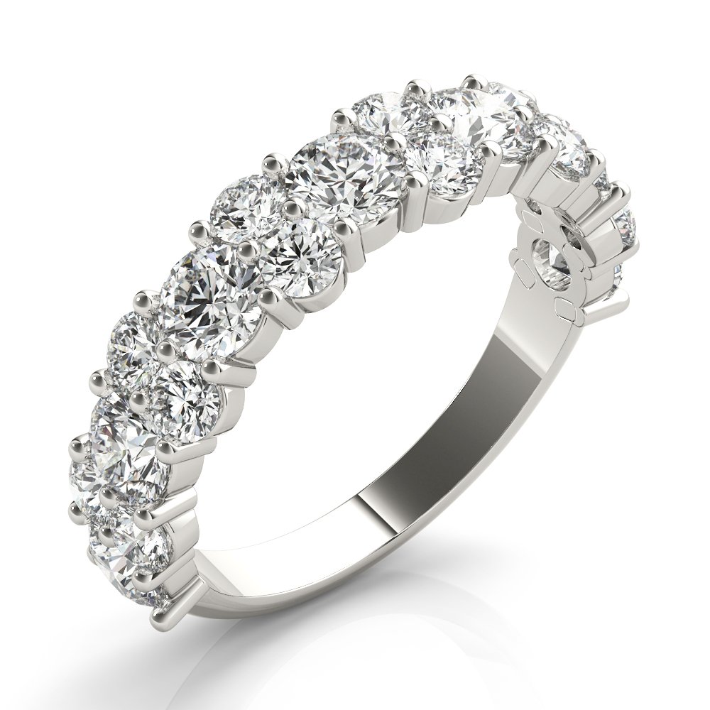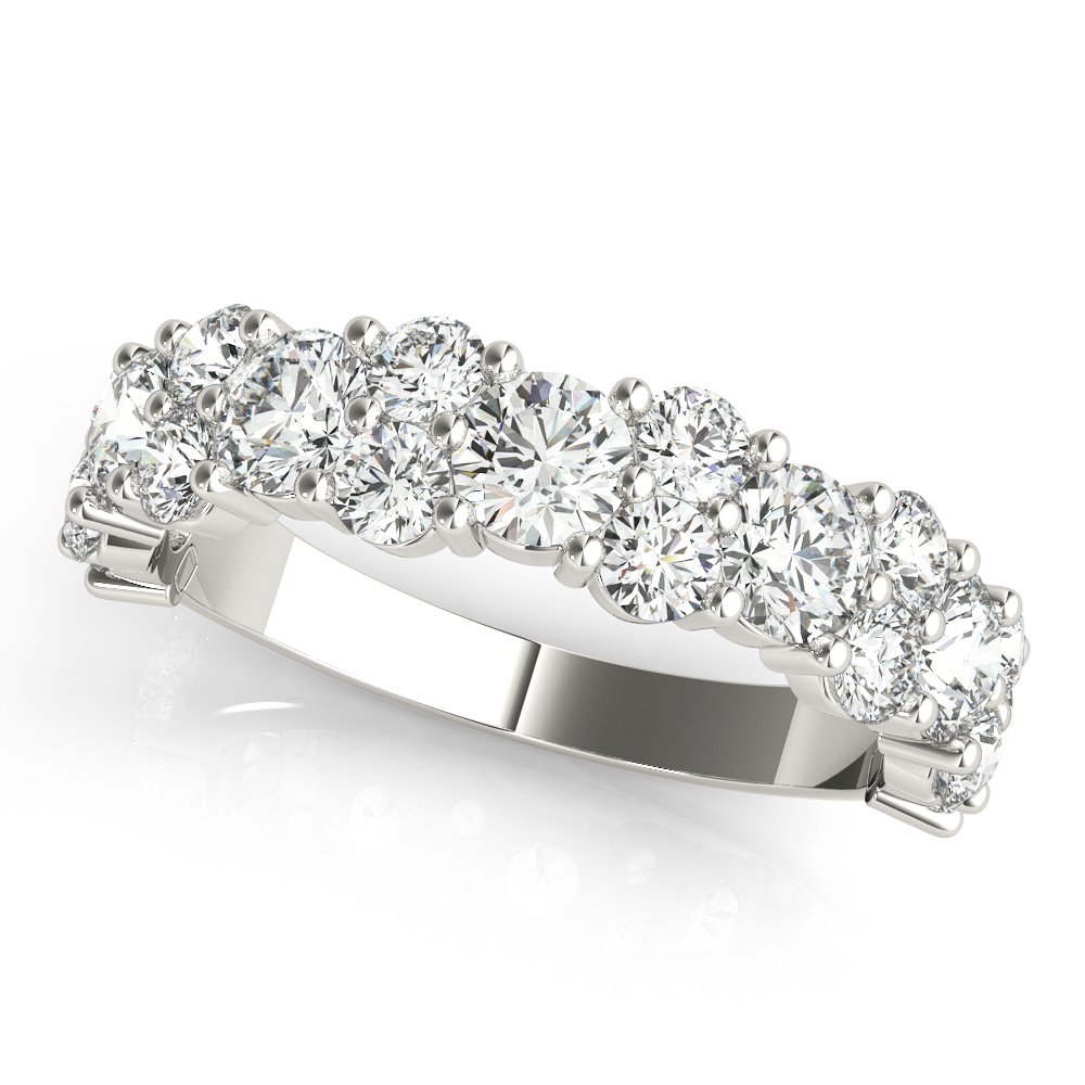 WOMENS FASHION 6 PRONG SHARED DIAMOND WEDDING BAND in 14K White Gold