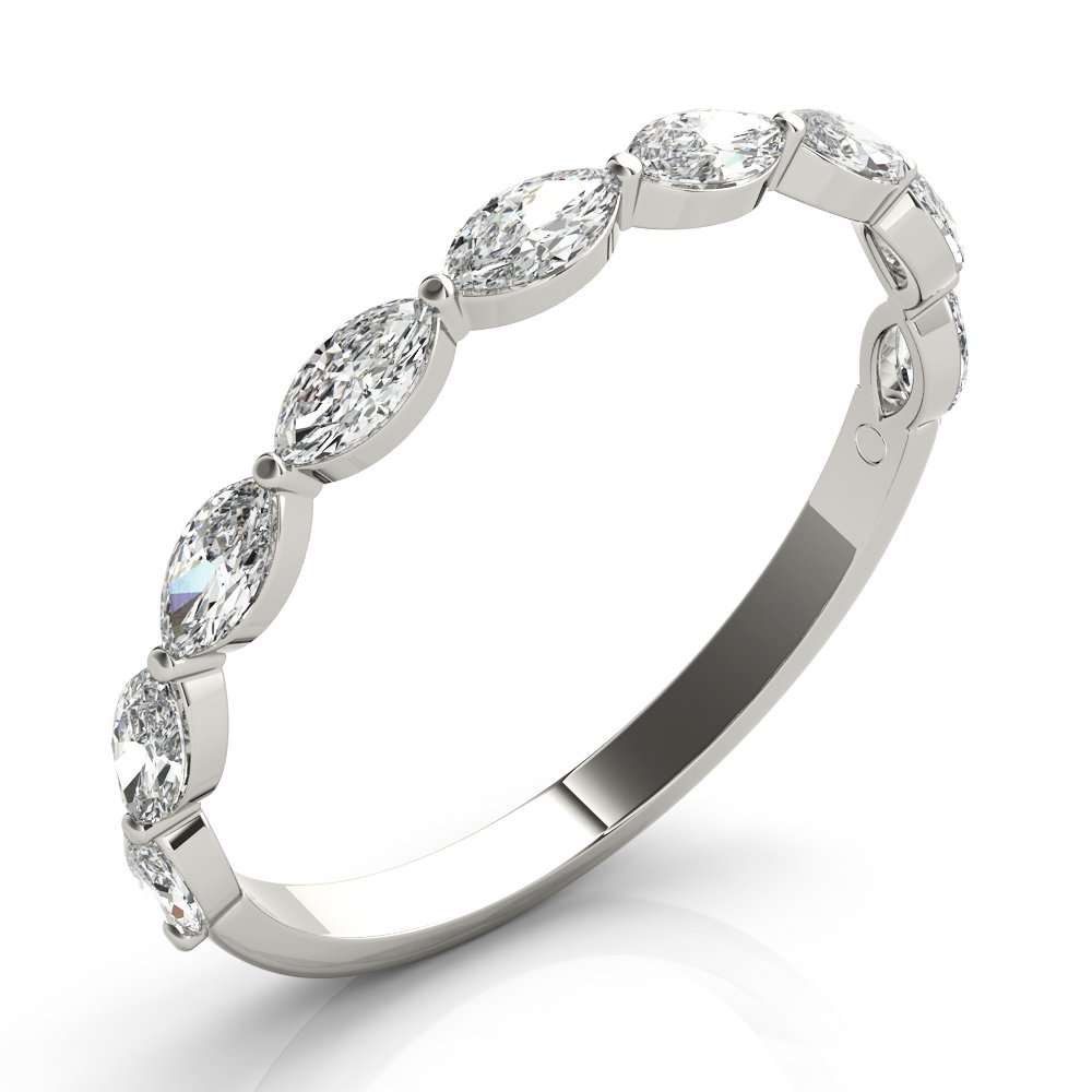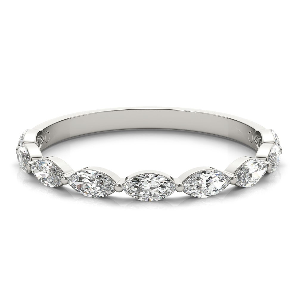 WOMENS FASHION MARQUIS DIAMOND SHARED PRONG WEDDING BAND in 14K White Gold