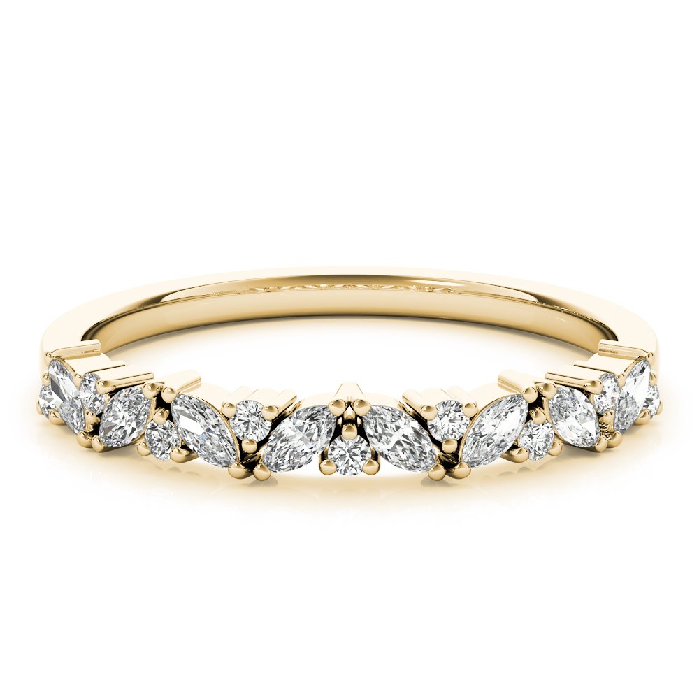 WOMENS FASHION MARQUIS DIAMOND WITH ROUND ACCENTS WEDDING BAND in 14K Yellow Gold