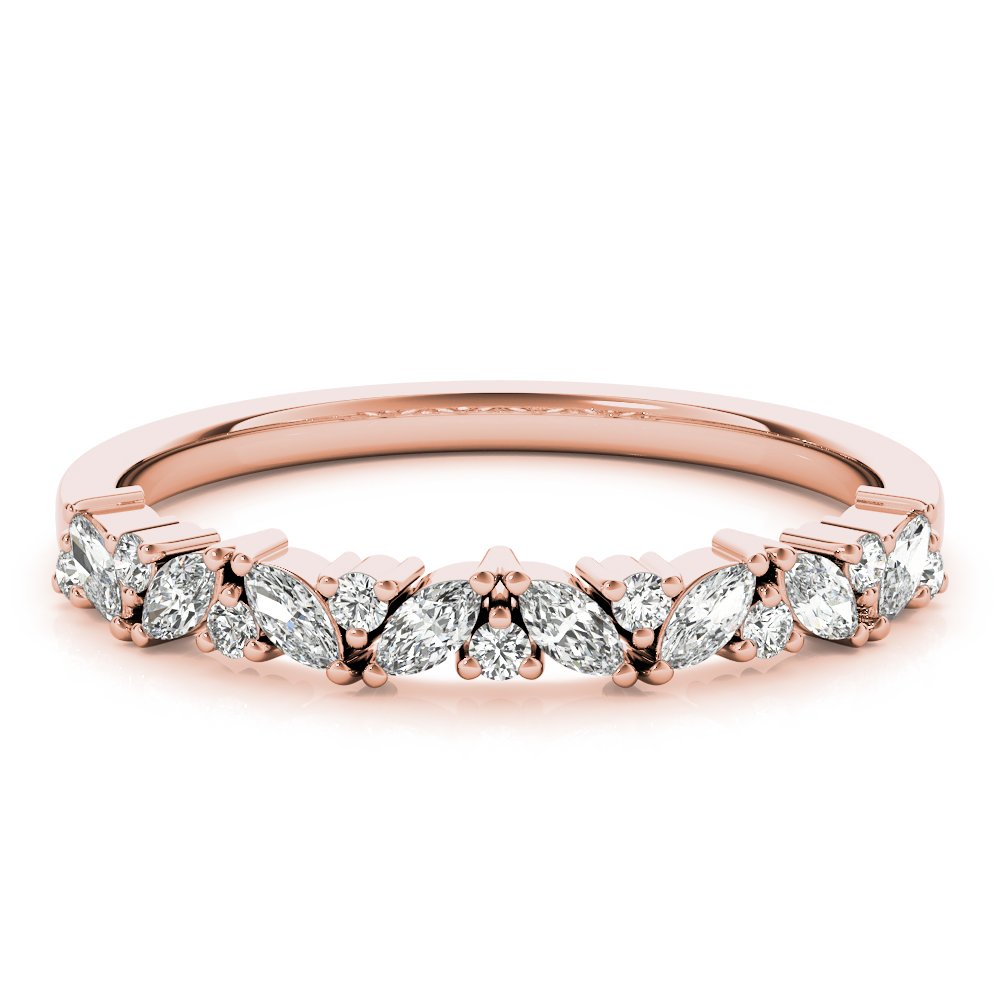 WOMENS FASHION MARQUIS DIAMOND WITH ROUND ACCENTS WEDDING BAND in Rose Gold