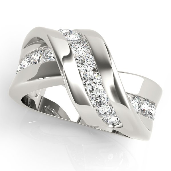 Introducing our Women's Ribbon Twist Diamond Ring. This elegant ring features a ribbon twist design with a channel of sparkling diamonds at its center, blending modern sophistication with timeless beauty. Elevate your style with this exquisite accessory, perfect for any special occasion. Available in your choice of Metal: Platinum, White Gold, Yellow Gold, and Rose Gold.