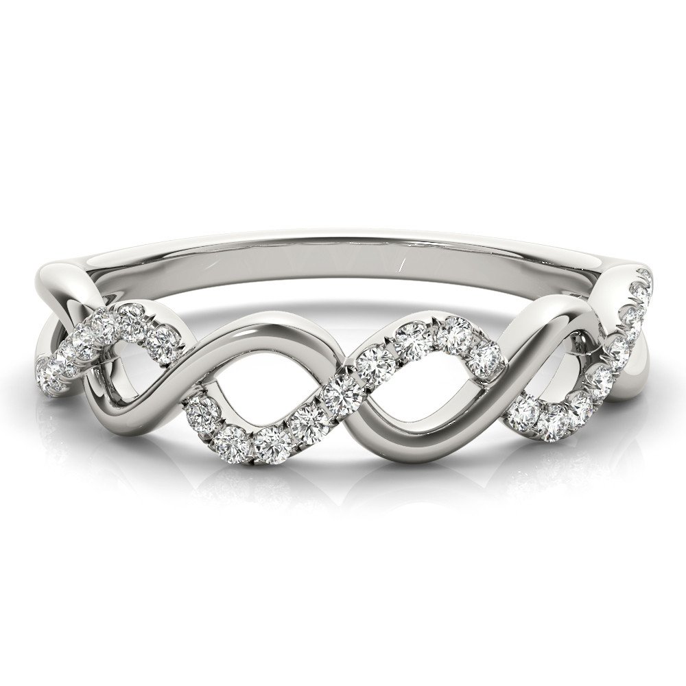 WOMENS TWISTED WAVE DIAMOND WEDDING BAND in 18K White Gold